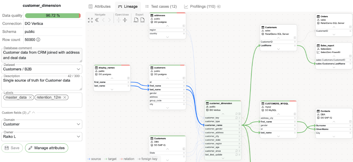 Gives full visibility into data assets, including definitions, ownership, dependencies, and quality status. Lineage tracking reveals how data flows across systems, showing source inputs, transformation logic, intermediate stages, and downstream usage. This transparency enables faster root cause analysis and impact analysis, helping teams understand both where a data issue originates and which reports, models, or regulatory submissions may be affected. These capabilities are essential for governance, auditing, and meeting regulatory expectations around traceability and accountability.