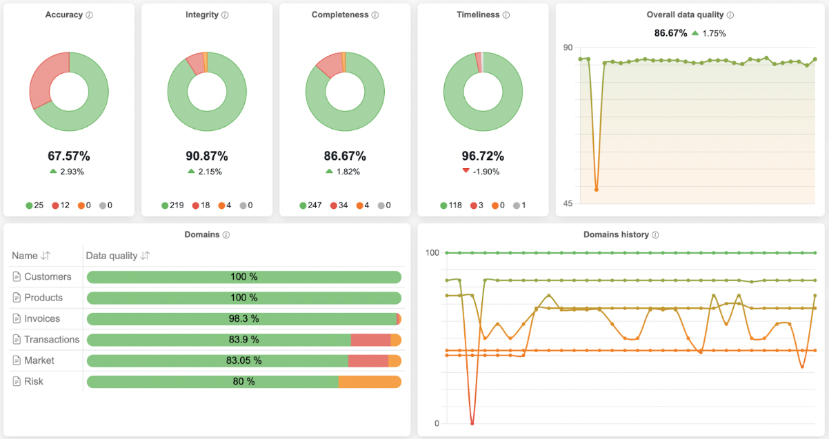- Timeliness: Continuous tracking of data freshness, pipeline delays, and update cycles ensures that aggregated risk data is always up to date and available at the speed required by the bank’s reporting frequency and the volatility of the underlying risk.