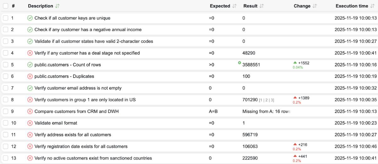 Ensure that data is clean, complete, and trustworthy before it reaches downstream systems. Validations help detect anomalies, missing fields, and formatting issues early in the pipeline, which reduces manual work and strengthens confidence in data.